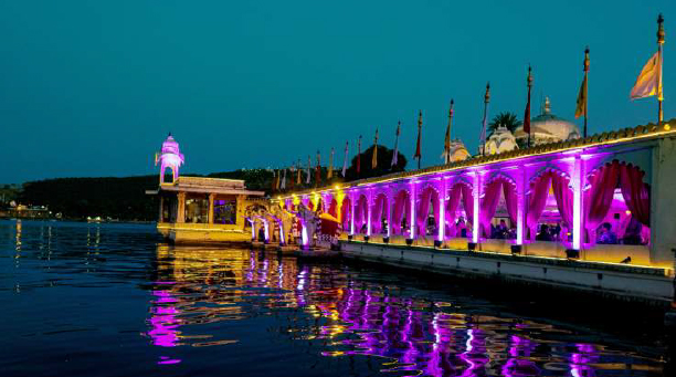 Wedding of Priyanshi and Vimal The wedding of Priyanshi, daughter of Mr. and Mrs. Jayesh Kumar and Vimal, son of Mr. and Mrs. Sandeep Patel was held at Jagmandir Island Palace, Udaipur. The procession took off from Gol Mahal to Rameshwar Ghat, The Promenade and from there the guests were ferried across to Jagmandir Island Palace of boats. Wedding ceremony was held at Reception Stage and dinner was arranged at the Garden.