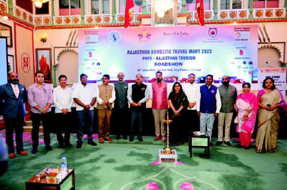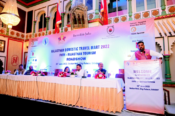 Tue, 28 June 5th promotional Roadshow for Rajasthan Domestic Travel Mart 2022Mr. Lakshyaraj Singh Mewar attended the 5th promotional roadshow for Rajasthan Domestic Travel Mart held at Durbal Hall Sabhagaar, Taj Fateh Prakash Palace, Udaipur. The RDTM which will be held from July 22-24 is jointly organized by the Department of Tourism and Federation of Hospitality and Tourism in Rajasthan. Ms. Gayatri Rathore, Principal Secretary for Tourism, Rajasthan was the Chief Guest along with Mr. Apoorv Kumar, President, FHTR. The meet witnessed the participation of Hotel and Restaurant Association of Rajasthan, Indian Heritage Hotels Association, Rajasthan Association of Tour Operations. Mr. Mewar addressed the gathering along with Mr. Rajender Bhatt, Divisional Commissioner, Udaipur and Mr. Tarachand Meena , Udaipur District Collector. Other participants included Mr. Kuldeep Chandel, Senior Vice President, FHTR; Mr. Surendra Singh, Vice President, FHTR and Ms. Shikha Saxena, Deputy Director of Tourism.