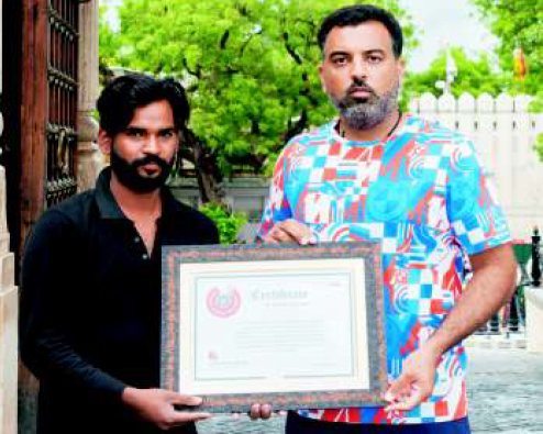Tue, 26 July Unique Book of World Record to Mr. Lakshmi LalMr. Lakshyaraj Singh Mewar felicitated Mr. Lakshmi Lal, Volunteer, World Animal Rescue Center on his achievement of Unique Book of World Record. Mr. Mewar presented him with a medal and certificate. Mr. Chaman Singh, President of World Animal Rescue Centre was also present for the occasion.
