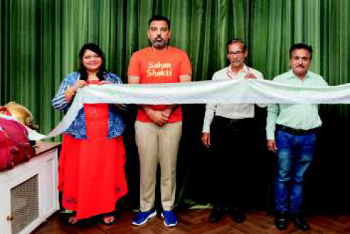 Wed, 17 Aug Unveiling of Long Sheet depicting the stories of Freedom fightersMs. Seema Vaidhya, Co-Secretary, Shantinath Navyuvak Mandal called on Mr. Lakshyaraj Singh Mewar at the City Palace, Udaipur to unveil her unique record of transcription of the stories on freedom fighters on a long sheet of cloth. Mr. Mewar wished her for her unique achievement.
