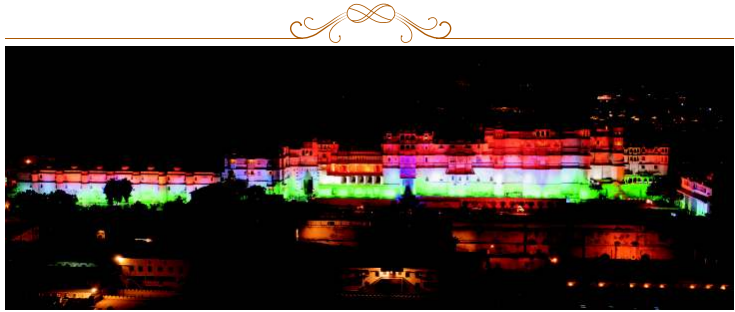 The City Palace, Udaipur all lit up in tri colour to mark the 75th Independence Day of India
