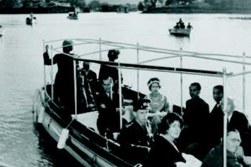 Her Majesty Queen Elizabeth II of Great Britain, accompanied by her husband HRH Prince Philip, The Duke of Edinburgh to Udaipur,seen in the boat on their way to Jagmandir Isalnd Palace with members of The Mewar Family and others