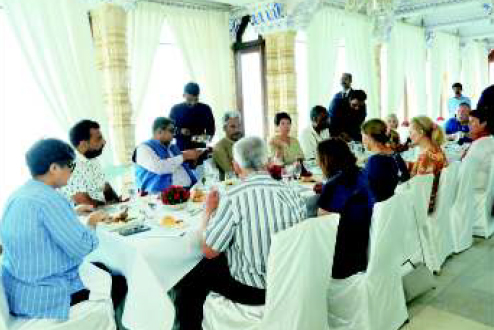 Visit of US Fam Group A group of 13 guests from US fam trip visit to Jagmandir Island Palace, Udaipur. The trip was organized by Greaves Tours. During the visit the group learnt about the heritage and aspects of Mewar. They had a brief meeting with Mr. Lakshyaraj Singh Mewar, Executive Director, HRH Group of Hotels, Udaipur. The group was greeted by Mr. Adityaveer Singh Ranawat, Vice President, Hotel Operations, HRH Group of Hotels and Mr. Chhatrasal Singh Baghela, General Manager, Shiv Niwas Palace. |