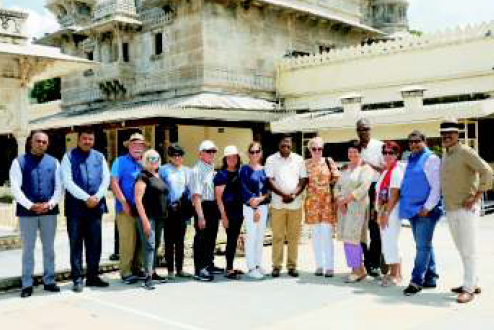Sun, 25 Sep Atout France welcome evening Atout France India, the official tourism organisation of France organised its B2B showcase in a high-profile event in Udaipur from 25th to 29th September 2022. It's the first offline workshop since 2019 witnessing over 2000 meetings taking place over two days of productive one-to-one meetings between buyers and suppliers. The workshop, which also marked 15 years of Atout France's direct presence in India, began with a welcome evening for partners on September 25 at the Jagmandir Palace in the presence of Ambassador of France to India Mr. Emmanuel Lenain. Sat, 15 Oct Guests from the Palace on Wheels at Jagmandir Island Palace The first group of tourists travelling in the luxury train, 'Palace on Wheels' was given a traditional welcome at Jagmandir Island Palace, Udaipur. This was the first run for this luxury train after two years, being halted as of COVID pandemic. Before this the Palace on Wheels was running continuously since 1982. Apart from Delhi and Agra, the seven-day journey of the royal train to the cities of Rajasthan, Jaipur, Jodhpur, Udaipur, Chittorgarh, Jaisalmer and Bharatpur. |