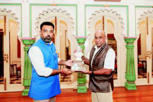 Visit to Jagdish Temple Mr. Lakshyaraj Singh Mewar visited Jagdish Temple and seek blessings of the deity and witnessed the Jagannath Rath Yatra Procession. The procession started from the famous temple of Udaipur Jagdish Temple from where the holy idol of Lord Krishna was placed on the silver chariot and carried by the members of Rath Samiti, Udaipur. Dignitaries and thousands of devotees witnessed this holy event. Wonderful meeting with Lieutenant General A. Arun Lieutenant General A. Arun, YSM, SM, VSM Colonel of The Regt. The Grenadiers and GOC Dakshin Bharat Area accompanied by his wife and family visited The City Palace, Udaipur He visited Zenana Mahal, Mardana Mahal and Amar Mahal Gallery: Splendour of Silver - Reflecting the finest of Silver smithy. |