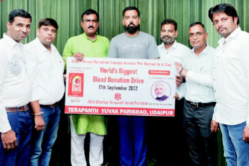 Mega Blood Donation Drive Mr. Tushar Mehta accompanied by members of Terapanth Yuvak Parishad, Udaipur called on Mr. Lakshyaraj Singh Mewar to invite him for their upcoming event of Word's biggest blood donation camp scheduled to be organized on 17th September 2022. This mega blood donation drive will be organized across the nation with 1000 camps. |