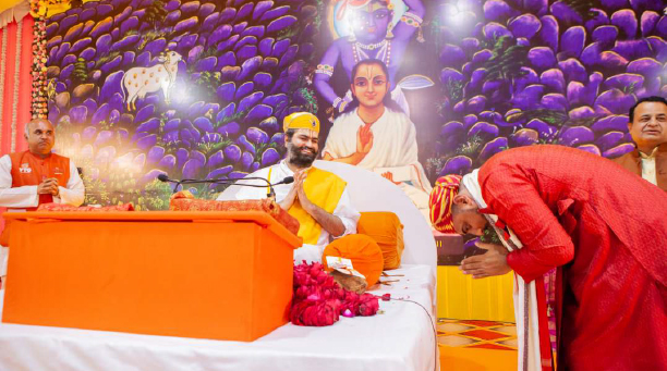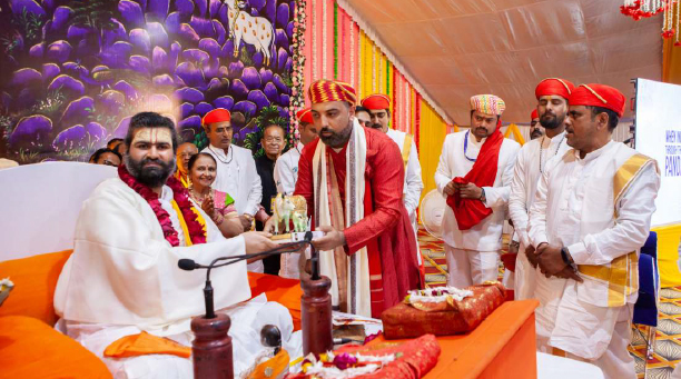 Mon, 19 Dec At Shrinath Charitramrit KathaMr. Lakshyaraj Singh Mewar attended the Shrinath Charitramrit Katha on the 6th day, organized by Shrinath Vaishnav Mandal at Fateh School, Udaipur and took blessing from Vallabhkul Maharaj Vrajraj ji. Mr. Mewar offered Mewari Turban. Shrinath Charitramrit Katha happened for the first time in the city of Udaipur.