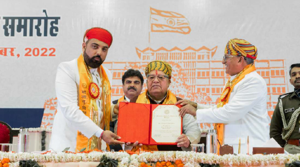 Tue, 20 Dec Honorary degree of Doctor of Literature "D Litt"Mr. Lakshyaraj Singh Mewar was conferred with the degree of Doctor of Literature "D Litt" by Governor of Rajasthan, Shri Kalraj Mishra at the 30th Convocation ceremony of Mohanlal Sukhadia Unversity at Vivekananda Auditorium. The Governor presented gold medals to 107 students and PhD Degrees to 187 scholers. Indian Paralympics player Mr. Devendra Jhajharia was also conferred the degree of Doctor of Literature. Professor Girishwar Mishra, Vice-chancellor of Mahatma Gandhi International Hindi University, Wardha was the Chief Speaker of the ceremony. Initial welcome speech was given by Vice Chancellor, Professor I.V. Trivedi. The convocation also witnessed the inauguration of new building of College of Architecture and foundation stone laying of Institute of Engineering workshop, Laboratory and sports academy building.