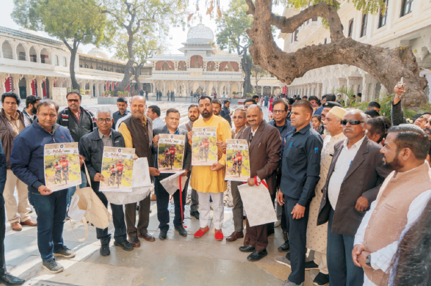 Mr. Lakshyaraj Singh Mewar unveiled the poster of the 6th edition of Pedal to Jungle. This expedition is being organized by the Forest Department, Green People Society, Cyclomenia, Bela Basera, Tourism Department to promote eco tourism. Program coordinator Mr. Rahul Bhatnagar, Mr. Pratap Singh Chuntawat, Mr. Sohel Majboor and Mr. Lalit Joshi were present for the unveiling ceremony. The expedition will start from Goramghat and conclude at Devar. |