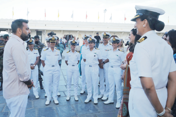 Thu, 23 Feb "She's unstoppable"- All Women motor Expedition team of Indian NAVYA group of women motor expedition from Indian Navy en- route halted at The City Palace and called on Mr. Lakshyaraj Singh Mewar. The All-women Car Rally with the slogan 'She's Unstoppable' and tag line 'Soar High' would commence from National War Memorial, New Delhi to War Memorial, Longewala (Rajasthan) and back over 12 days from 14th to 25th February 2023. The rally would traverse through Jaipur, Bikaner, Jaisalmer, Longewala, Jodhpur, Udaipur prior returning to Delhi covering a distance of 2300 Kms. The car rally was flagged off from National War Memorial by Admiral R Hari Kumar PVSM, AVSM, VSM, ADC the Chief of the Naval Staff virtually and Mrs Kala Hari Kumar, President NWWA. During the rally the President NWWA and members would undertake outreach programs at Schools for Special Children, Old Age Home and Orphanages along with interacting with Veteran families. The women officers would undertake awareness drives about career opportunities that the Indian Navy offers.
