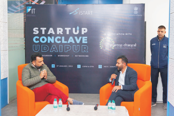 Mr Manoj Bishnoi, Deputy Director, I-Start Nest Incubation Center interacted with Mr. Mewar and shared the journey of entrepreneurship. They also interacted with the start-ups. The session was moderated by Mr. Sumit Srivastava, The Founder of Choupal.