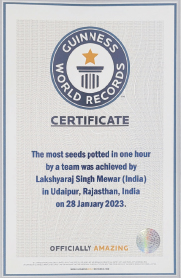 A birthday celebration with 7th Guinness World Record Mr. Lakshyaraj Singh Mewar has always kept the tradition of taking initiatives for the betterment of the society and Mewar region in particular by spreading the light with his social services, like his ancestors. Mr. Mewar registered his name in the Guinness Book of World Records for the 7th time, in which he has sown 21058 seeds in 40 minutes. Under the 'Seeds of Future' campaign, he has created a Guinness Book of World Record by sowing 21058 seeds of different types of trees and plants in just 40 minutes. Mr. Mewar established this world record through its team by planting different types of seeds in the Zanana Mahal, The City Palace, Udaipur. He took this initiative to spread the message of land-environment protection to the masses, because at present the problem of global warming is worrying the most. His previous records include Vastradaan, collected over 3,29,250 pieces of clothing material from over 76,000 donors and distribution. The campaign reached out to over 120 schools, 15 colleges and around 30 NGO's during the campaign period on 09th March 2019. Collection and distribution of more than 20 tons of stationery materials among the students in 24 hours on 20th August 2019. |