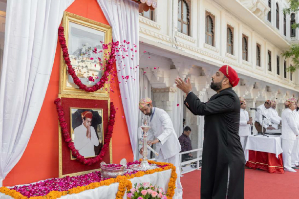 Mr. Lakshyaraj Singh Mewar garlanding Parmeshwaraji Maharaj Shree Eklingnath ji