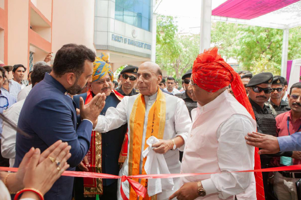 Sat, 15 April Inauguration of Department of Travel and Tourism and Hotel Management and meeting with Defence Minister of IndiaMr. Lakshyaraj Singh Mewar and Mr. Rajnath Singh, Defence Minister of India inaugurated the Department of Travel and Tourism and Hotel Management at Rajasthan Vidhyapeeth University. Mr. Mewar held a brief meeting with the Defence Minister. The minister was in Udaipur for the 16th Convocation Ceremony of the Janardhan Rai Nagar Vidyapeeth Deemed to be University.