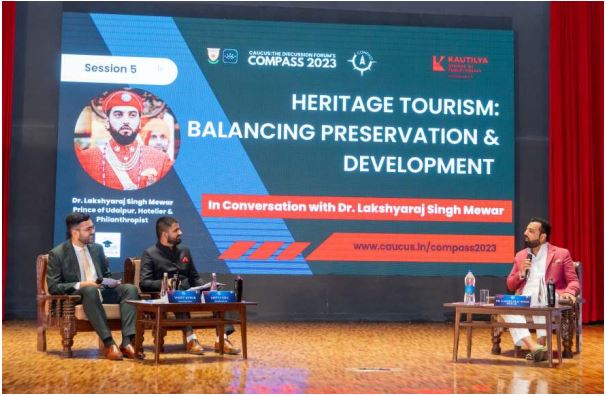 Wed, 19 April At COMPASS 2023 - Annual Speakers ConclaveMr. Lakshyaraj Singh Mewar was invited as a speaker at the discussion forum of Hindu College, at their annual speaker conclave - COMPASS 2023. Mr. Mewar lectured on topic "Heritage Tourism: Balancing Preservation and Development". The two day conclave was presented by Kautilya School of Public Policy from 18-19th April 2023. |