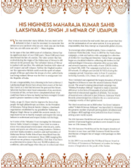 For complete article please go to: http://hrhhotels.com/mediaBuzz/gallery.html?id=90 Article snippet:The article on Custodians of India's History featuring Mr. Lakshyaraj Singh Mewar.