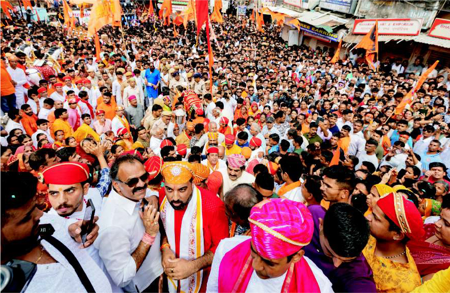 Tue, 20 June Lord Jagannath go on city tour Lord Jagannath's Rath Yatra in Udaipur was a grand affair. The chariot was pulled by thousands of devotees, who were eager to touch the silver chariot and offer their prayers to the Lord. The whole Jagdish Chowk courtyard echoed with the cheers of Jagannath. Mr. Lakshyaraj Singh Mewar, also attended the event and offered prayers for the welfare of the entire Mewar region. He urged the residents of Udaipur to take part in this grand procession. The Rath Yatra is a major event in Udaipur and is celebrated with great pomp and circumstance. It is a time for people from all walks of life to come together and celebrate their faith. Earlier on the 18th June, a group of priests and temple caretakers visited The City Palace to invite Mr. Lakshyaraj Singh Mewar on the auspicious Chariot Festival of Shree Jagadnath Swami where Mr. Mewar urged the residents of Udaipur to take part in this grand procession.