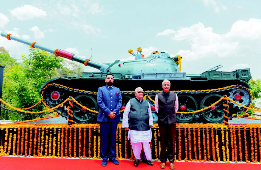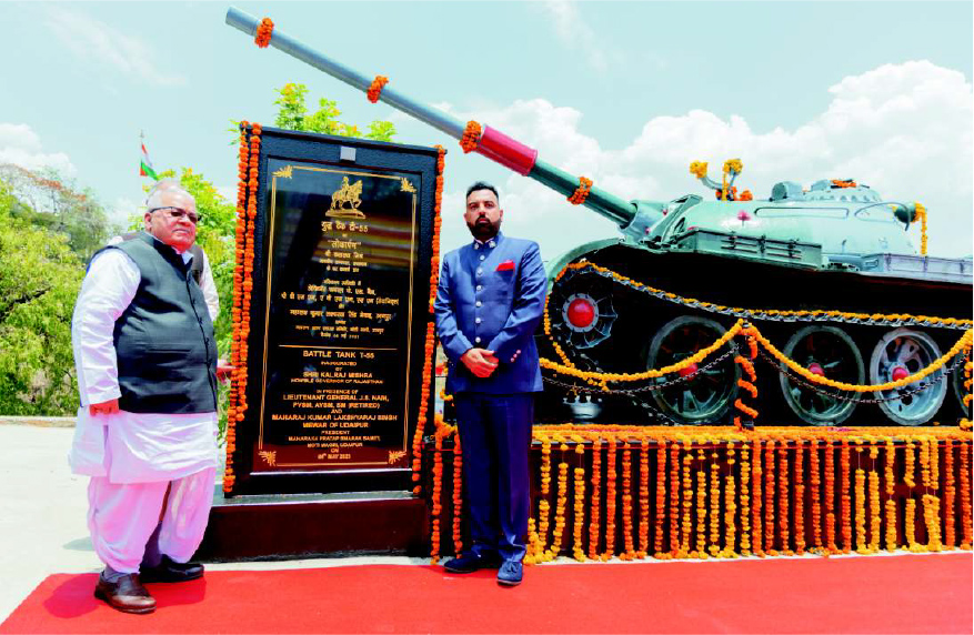 Hon'ble Governor of Rajasthan, Mr. Kalraj Mishra and Hon'ble Governor of Rajasthan, Mr. Kalraj Mishra, Mr. Lakshyaraj Singh Mewar, Rt. Lieutenant General J.S. Nain at the unveiling of the battle tank T-55 Hon'ble Governor of Rajasthan, Mr. Kalraj Mishra, Mr. Lakshyaraj Singh Mewar, Mrs. Nivritti Kumari Mewar, Rt. Lieutenant General and Mrs. J.S. Nain and other dignitaries |