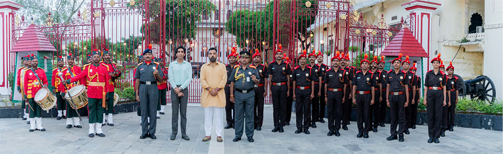 Mr. Lakshyaraj Singh Mewar, Capt. Rishab Suri and Mewar Palace Security after the pipping ceremony |