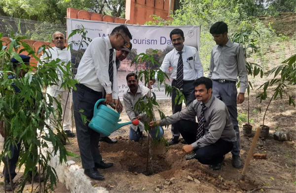 Gajner Palace Celebrates World Tourism Day with a Plantation Drive On the occasion of World Tourism Day, Gajner Palace, Bikaner, organized a plantation drive to promote environmental sustainability and responsible tourism practices. This initiative aimed to not only enhance the natural beauty of the palace grounds but also raise awareness about the importance of preserving our planet for future generations. As part of the plantation drive, staff members and guests planted a variety of native trees and shrubs around the palace premises. The participants enthusiastically dug holes, watered the saplings, and placed protective fences around them. The atmosphere was filled with a sense of camaraderie and purpose as everyone worked together to contribute to the greener future of Gajner Palace. The plantation drive on World Tourism Day was a successful and meaningful event that highlighted Gajner Palace's dedication to environmental sustainability and responsible tourism. It is a reminder that tourism can be a powerful force for positive change, and that we all have a role to play in preserving our planet for future generations.