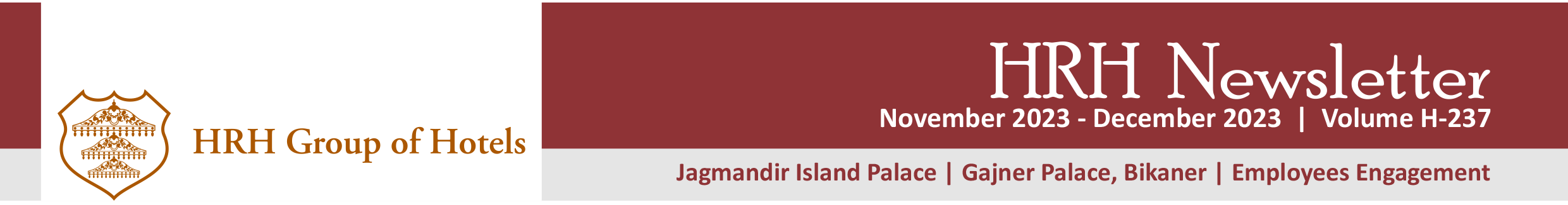 Fri, 10 Nov Celebrating the auspicious Deepawali Festival In the vibrant glow of diyas, the HRH Group of Hotels staff came together at the Executive Dinning Room of Shiv Niwas Palace, Udaipur for a heartfelt Deepawali celebration. Over a hundred smiling faces illuminated the room as the air thrummed with devotional chants. Led by palace priest, an aarti ceremony unfolded, the flickering flames of ghee lamps mirroring the warmth in everyone's eyes. Offerings of fruits and sweets were presented, their fragrance mingling with the scent of incense, further amplifying the sanctity of the occasion. As the prasad was distributed, warm wishes and joyful laughter filled the space, solidifying the bonds of community and shared joy.