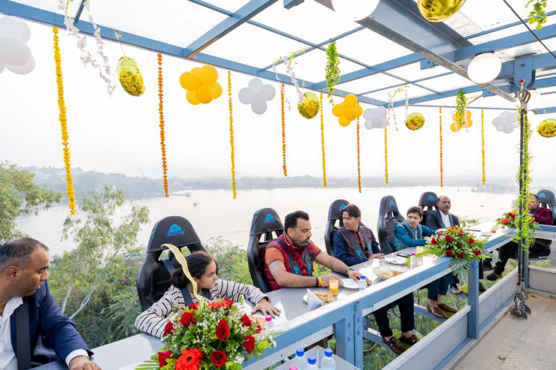 Thu, 28 Dec Launch of Aurosky, a Soaring Culinary Experience in Udaipur Mr. Lakshyaraj Singh Mewar and family Mrs. Nivritti Kumari Mewar, Master Haritraj Singh Mewar, Miss Mohlakshika Kumari Mewar and Miss Praneshwari Kumari Mewar, were invited to celebrate the grand launch of the Aurosky restaurant in Udaipur. Aurosky, nestled amidst the heart of the city at Moti Magri, Udaipur redefines dining with its unique "Adventurous" concept. Soaring 180 feet above the ground, it promises an unforgettable gourmet and hospitality experience. Imagine indulging in culinary delights while captivating views of Fatehsagar Lake and the majestic Aravali Mountains unfold before you. Aurosky isn't just a meal; it's an affair to remember, perfect for creating cherished moments with loved ones. Let yourself be swept away by the panoramic vistas, impeccable service, and exquisite cuisine - a harmonious blend of luxury and adventure. |