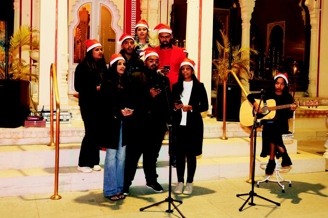 Sun, 24 DecHRH Group of Hotels Rings in the Festive Season with Grand Christmas Celebration Udaipur and Gajner, Bikaner: Immersed in the spirit of Christmas, Shiv Niwas Palace in Udaipur and Gajner Palace in Gajner, Bikaner, were transformed into winter wonderlands on December 24th, 2023. Dazzling decorations adorned the premises, culminating in beautiful Christmas trees sparkling with festive cheer. Guests were greeted by the jolly Santa Claus himself, who delighted them with gifts and heartwarming merriment. Carol singers filled the air with joyous melodies, creating a truly magical atmosphere. As the evening unfolded, guests exchanged wishes and cherished the occasion, savoring delectable cakes and pastries crafted by the hotel's skilled bakery chefs.