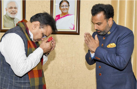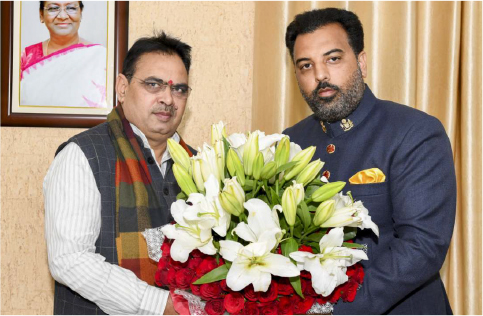 Sat, 13 Jan Meeting with Chief Minister of Rajasthan In a recent display of courtesy and cultural exchange, Mr. Lakshyaraj Singh Mewar, visited the newly elected Chief Minister of Rajasthan, Mr. Bhajan Lal Sharma, in Jaipur. The meeting was marked by a thoughtful gesture as Mr. Mewar presented a symbolic gift comprising soil and a flower bouquet from the historic battlefield of Haldighati, associated with the legendary Maharana Pratap, to Chief Minister Bhajan Lal. Moreover, Mr. Mewar extended a warm invitation to Chief Minister Bhajan Lal to experience the rich heritage of Mewar firsthand. The dialogue between the two dignitaries delved into a range of contemporary issues and delved into the illustrious history of Mewar, providing a glimpse into the region's cultural tapestry. This engaging exchange of ideas and historical insights lasted approximately half an hour, reflecting a blend of tradition, diplomacy, and mutual respect.