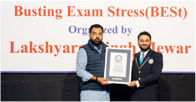 Mr. Lakshyaraj Singh Mewar made his 8th world record, by conducting the largest stress management lesson 'Busting Exam Stress', which was recognized by the Guinness Book of World Records. |