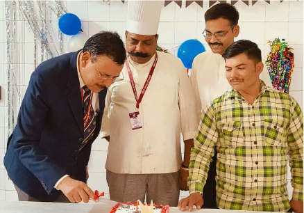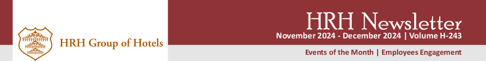 Celebrating Birthdays at HRH Group of Hotels In a delightful display of employee engagement, HRH Group of Hotels recently organized a combined birthday celebration for employees born in the month of November 2024 and December 2024. The vibrant Executive Dining Room of Shiv Niwas Palace in Udaipur, Gajner Palace and Karni Bhawan Palace in Bikaner, served as the venue for this joyous occasion. Employees with birthdays in the same month were invited to a collective celebration. The celebration involves cutting a cake and creating a vibrant atmosphere of camaraderie. The birthday celebrations are more than just a simple event; they represent the company's commitment to fostering employee connections and creating a positive work environment, recognizing and appreciating staff members.