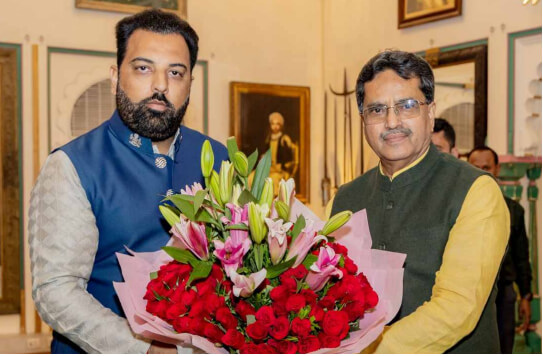Mr. Lakshyaraj Singh Mewar meet Tripura CM Manik Saha Mr. Lakshyaraj Singh Mewar and Chief Minister of Tripura, Mr. Manik Saha, held a courtesy meeting at the City Palace, Udaipur. Mr. Mewar welcomed Chief Minister Saha in accordance with Mewari tradition. During their discussion, they explored the glorious history of Mewar, delving into topics such as art, literature, culture, and various contemporary issues. Chief Minister Saha also highlighted the water management practices from the princely era of Mewar, emphasizing their significance in today's context.