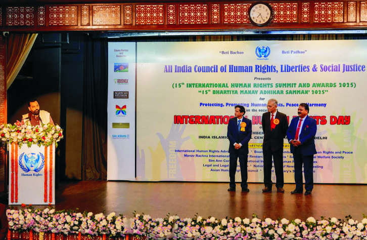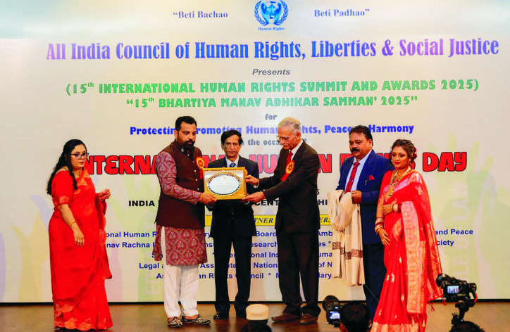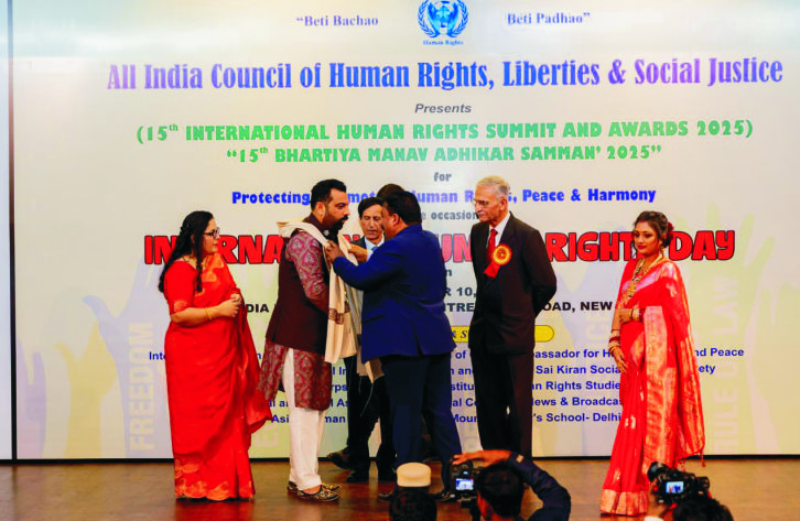 Wed, 10 December Shriji Honored at 15th International Human Rights Summit Shriji Dr. Lakshyaraj Singh Mewar received prestigious recognition at the 15th International Human Rights Summit & Awards 2025, held on December 10, 2025-International Human Rights Day-at the India Islamic Cultural Centre Auditorium in New Delhi. Shriji was awarded for his role in advancing human rights through community leadership and philanthropy. Hosted by the All India Council of Human Rights, Liberties & Social Justice (AICHLS) under Dr. Anthony Raju, the event drew distinguished dignitaries including Lt. Gen. Zameer Uddin Shah, Maj. Gen. Dr. Rajan Kochchar, and Dr. N. C. Wadhwa (IAS), who presented awards to global human rights defenders. Highlights included a soulful opening performance by Mount St. Mary's School students, a peace message from Syedi Qaidjoher Ezzuddin, and honors for figures like journalist Ms. Sumera Khan and transgender activist Meera Parida.
