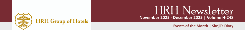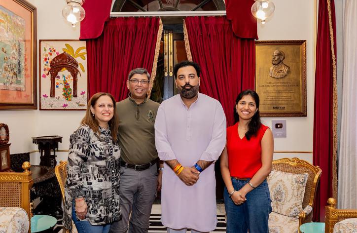 Sat, 01 November Felicitation of Mayo College Teachers Shriji Dr. Lakshyaraj Singh Mewar attended the felicitation ceremony honoring two esteemed Mayo College teachers, Mr. Pramod Chaturvedi and Mr. Suresh Mathur. The event occurred at Kangra Amphitheater in Mayo College, Ajmer, followed by a dinner with the teachers and special guests. Mon, 03 November Dr. Debashish & Dr. Kalpana Sengupta Visit Shriji at Shambhu Niwas Palace Dr. Debashish Sengupta, Urologist, and Dr. Kalpana Sengupta, Paediatric Nephrologist accompanied by their daughter called upon Shriji Dr. Lakshyaraj Singh Mewar at Shambhu Niwas Palace, Udaipur. |