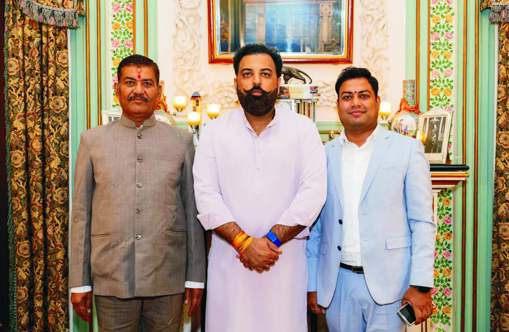 UDCA Secretary Mr. Manoj Chaudhary, Treasurer Mr. Mahendra Sharma, and special invitee Mr. Mahipal Rupura attended, with Mr. Harsh Jain conducting the ceremony. Wed, 12 November Former MLA & Councilor Call on Shriji Mr. Dharam Narayan Joshi, former Member of Legislative Assembly, and Mr. Vijay Viplavi, former councilor and prominent social worker, called upon Shriji Dr. Lakshyaraj Singh Mewar, at the historic Shambhu Niwas Palace in Udaipur. Mr. Naman Pachori & Mr. Sunny Waghchoure Meet Shriji Mr. Naman Pachori, Udaipur entrepreneur, and Mr. Sunny Nanasaheb Waghchoure, entrepreneur, film financier, and social media personality, visited Shriji Dr. Lakshyaraj Singh Mewar at Shambhu Niwas Palace, Udaipur, accompanied by their families. |