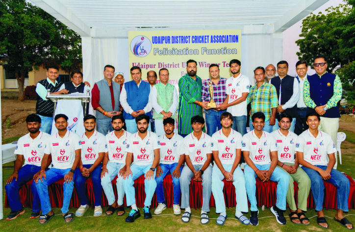 Dr. Arvind Dwivedi visited Shriji Dr. Arvind Dwivedi, astrologer and counselor visited Aaj Tak Anchor Ms. Neha Batham Meets Shriji at Shambhu Niwas Palace Ms. Neha Batham, Aaj Tak news anchor covering business and current affairs, along with her associates, called upon Shriji Dr. Lakshyaraj Singh Mewar at Shambhu Niwas Palace, Udaipur. Tue, 11 November UDCA Honors Winning Cricket Team The Udaipur District Cricket Association (UDCA) celebrated the Udaipur team's victory in the state-level Under-23 cricket tournament at Shikarbadi ground. UDCA President Shriji Dr. Lakshyaraj Singh Mewar served as chief guest and presented the winners with a Rs. 1,25,000 prize. Special guest Mr. Deepak Sharma joined the event, where the Jala Association also awarded each player Rs. 5,000. |